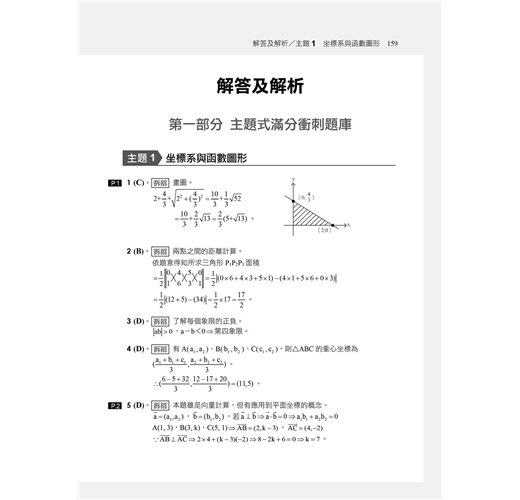 每題試題均針對考試趨勢精心嚴選,挑選出關鍵題型始同學快速掌握考試關鍵重點,且題題皆有精準的解析,另外更設有「拆招」,使學生能「見招拆招」,盼能藉由此書在數學科測驗中獲取高分。