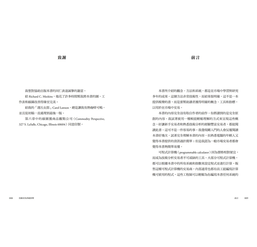 但是在你運用任何一個系統開始交易前,請先讀過第九和第十章。目錄的章節分類如上所述。