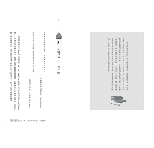除此之外,讀書的目的並非「成功」或是「競爭」,而是「成長」。不論身在何處、做什麼事,「讀書」是為自己的人生及夢想做準備的過程。