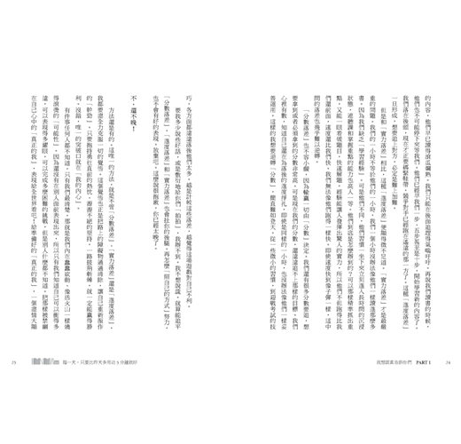 人們總認為讀書是逼不得已才勉強做的,是頭腦或家庭條件好才能做得好的事。但是我的學習不是「頭腦」或「方法」的問題,反倒是「心態」的問題。因為現在回想起來,學習效率好是因為「心態」,學習效率差也是因為「心態」。
