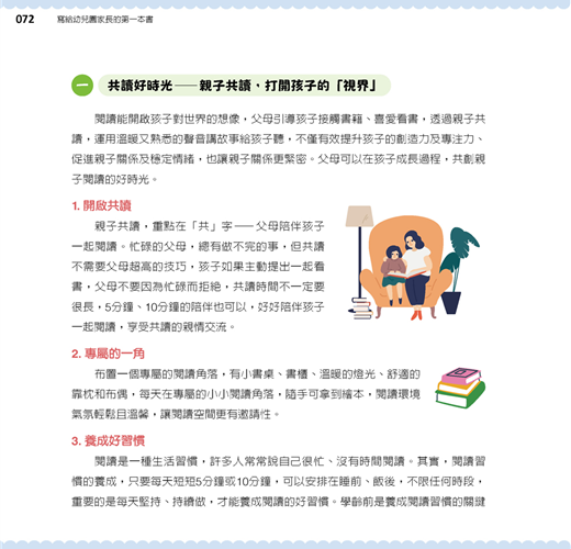 本書邀請全國重磅級的幼教學者和幼兒園園長專家,就人生成長的第一個六年,選擇十二個重要議題、五十二個單元細目,深入淺出的例證,期待家長由微系統「家」的出發,關注幼兒的健康、營養和品格,進而陪伴孩子學習,發現寶貝的優勢智能而因材施教。
