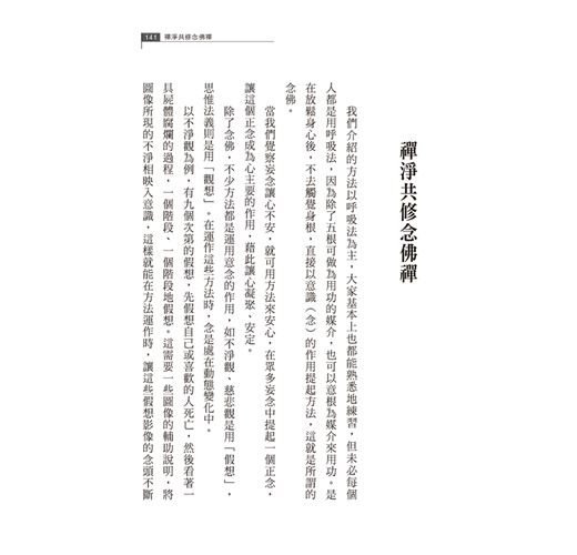 呼吸法和念佛法兩種方法,呼吸法是透過身根觸覺的作用,念佛則是藉由意識的功能,進入心比較內層的作用。