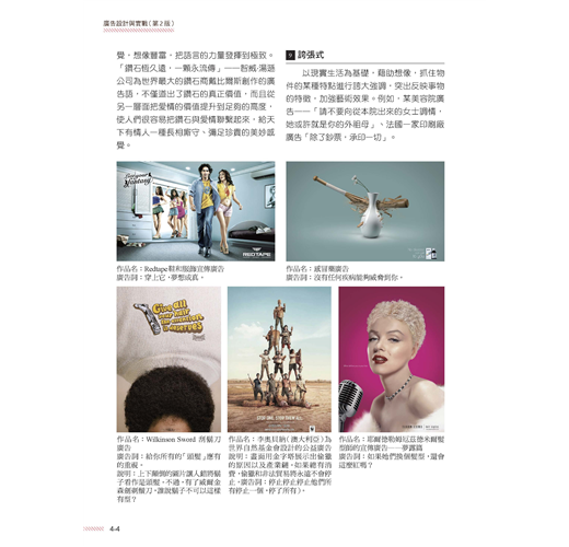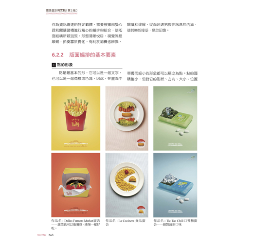 想抓住人的心,要先抓住他的眼睛!本書介紹了廣告的歷史沿革、廣告設計的思想演進,分析、探討了廣告創意理論和方法,並從廣告圖形、色彩、版面編排與構成設計,以及廣告媒體的選擇和傳播效果評價方法等方面人手,總結和歸納出廣告的創意精髓、製作和表現技巧,較為詳細地闡述了廣告設計與傳播的基本原理和實踐經驗。書中附圖均選自國內外優秀的廣告設計作品,具有很高的學習和欣賞價值。風格多樣的圖例可以幫助讀者更加直觀形象地理解理論知識,同時配合教材中相關的課程作業,讓讀者在學習與實踐中真正領悟廣告創作的要點。