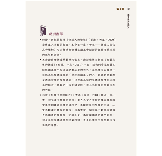 ★ 每章附「私房書單」,推薦講道者必讀的經典書籍!