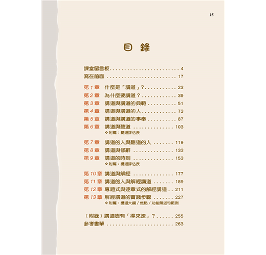 回顧過往,置身許多充滿挑戰的教學和講道經歷,教導的對象遍及神學生、資深牧者、信徒領袖、初出茅廬的新鮮傳道,以及對講道毫無概念的教會小組長。透過這些經驗,我不斷調整自己的教學法,編寫屬於自己的講義。面臨時代的變遷,只能一再提醒自己:「不要效法這個世界,只要心意更新而變化,叫你們察驗何為神的善良、純全、可喜悅的旨意。」(羅十二 2)