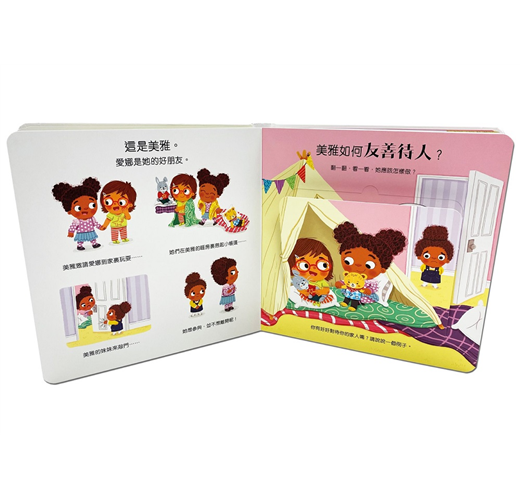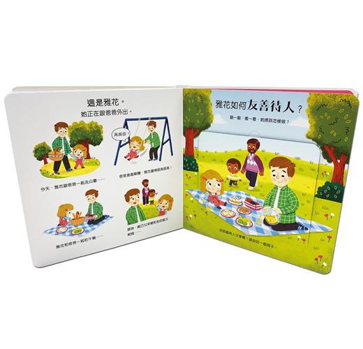 讓幼兒翻一翻不同的情境,學習待人接物,