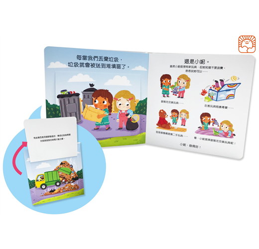 本書透過8位小朋友的生活經驗,利用翻翻互動形式呈現,讓幼兒翻一翻有關環保的情境,學習如何由日常生活做起,讓自己發揮拯救地球的力量!