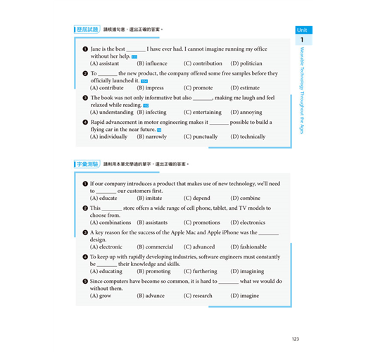 符合升大學考試需求,透過閱讀範文認識單字
