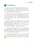 本書一共分為三篇,第一篇為學群篇,包含兩章,第一章為生命科學學群的認識,主要介紹生命科學學群相關科系發展以及目前產業趨勢,好讓同學對於生命科學學群有初步認識;第二章為生命科學學群的科系介紹,主要針對幾個主要科系作詳細的介紹,讓同學更能清楚選擇自己的未來出路