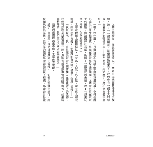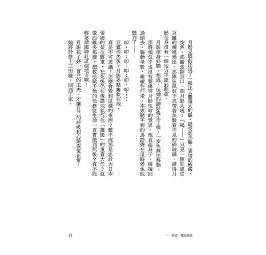 另外,月影和之華,一方面對日本的社會文化很感親切,另一方面又對日軍過去的侵華行為非常心痛。在尋寶過程中,他們得知,一個生性善良的日本青年被徵兵去中國,在南京攻略作戰中翻身為可惡的「鬼子」了。月影面對南京大屠殺、長崎原爆等戰爭暴力,每每放聲大哭。這世界有太多人站在一方而辱罵另一方,她卻替全人類哭泣,並用那淚水來洗淨歷史的汙垢。作者通過月影的形塑表達出來寬恕的精神,教我特別感動。