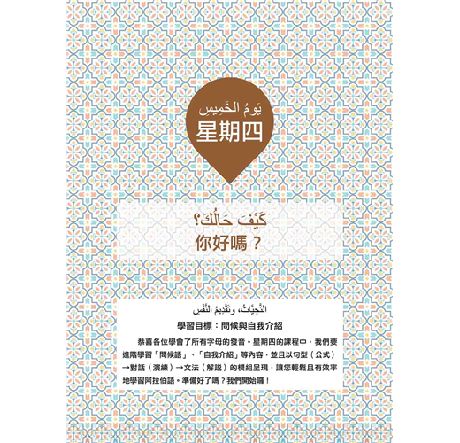 星期四到星期六,讓我們用三天,一起學習阿拉伯語的慣用語、數字、家人稱謂、直述句、疑問句等實用的表達方式。