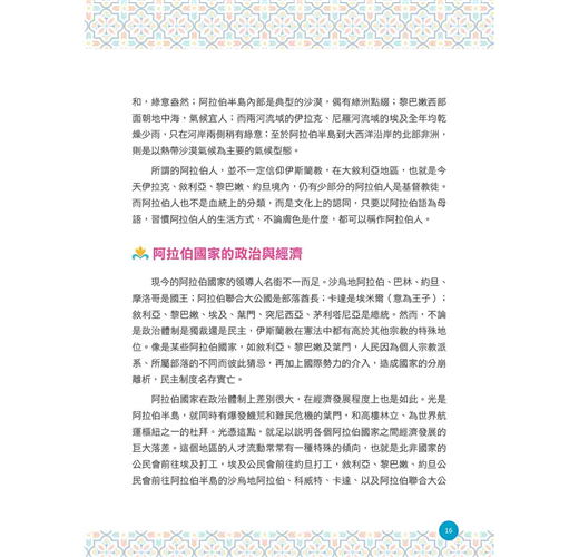 介紹阿拉伯世界的風俗習慣、宗教信仰,藉由異國文化的薰陶,您對學習阿拉伯語的興趣肯定會大增的!