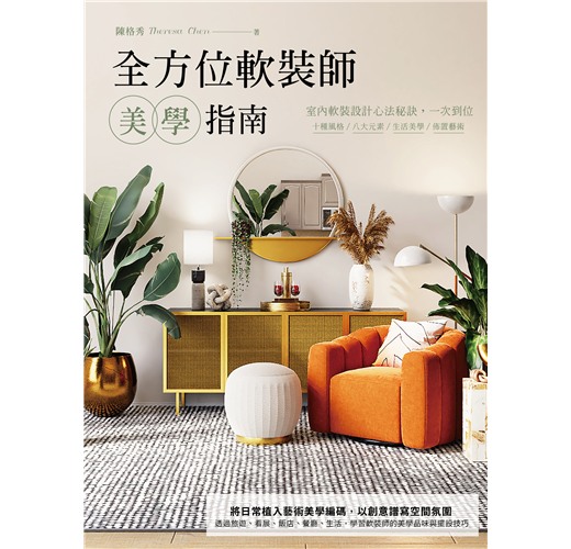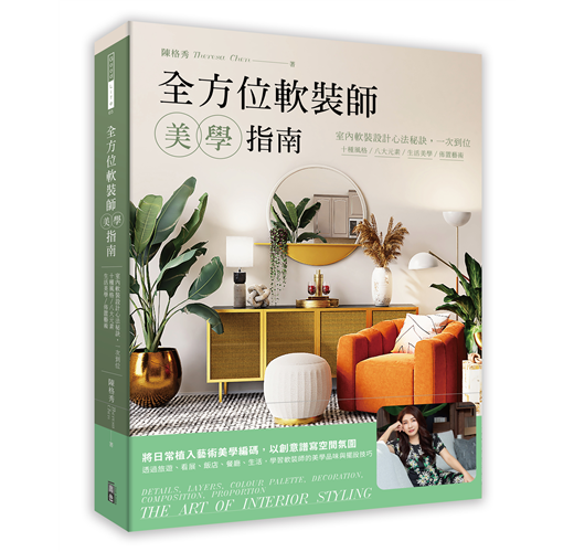 將軟裝設計中最主要的八大構成元素,如傢俱、香氛、燈飾、擺飾、紡織品等,有條理及邏輯性地分類,獨創好用又好記的一套心法,讓讀者能自行靈活運用,創造獨一無二的個人風格。