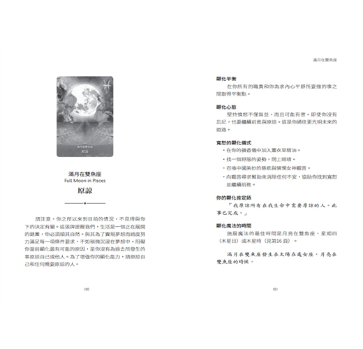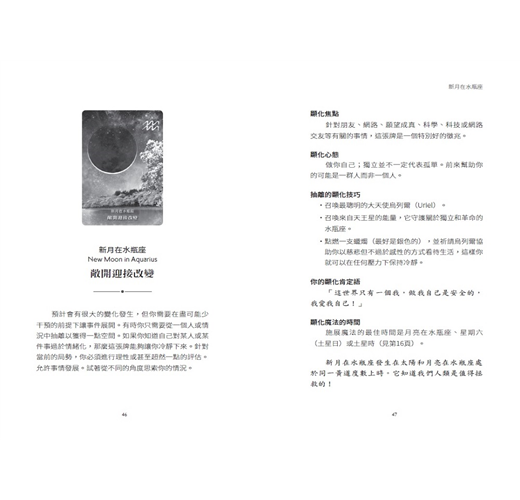 3.揭露每張牌在占星學上的意義,幫助加深對占星學與月相學的理解。