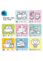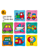 每盒內含八幅拼圖,正面是常見的交通工具,有4、5、6、7等四種片數組合。背面則是塗色遊戲,讓孩子愛上手繪。拼圖色彩鮮明,造型可愛,讓孩子從拼合的過程中了解部分與整體的概念,訓練手部小肌肉的發展,增進手眼協調、圖形辨識、邏輯思考等能力。