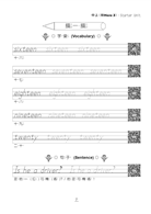 4. 句句掃碼 QR Code。讀二拼一中一(讀兩遍單字,拼讀一遍,中譯一遍)的錄音,使學生在書寫過程中一面聽、一面讀、一面寫,同時加強聽、說、讀的能力。