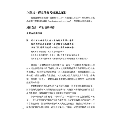 龍樹菩薩曾經說過,諸佛皆有二身,即色身以及法身。欲成就色身就必須進行有對境的禪修(meditation with an object)。於是根本頌這樣說: