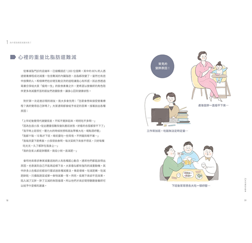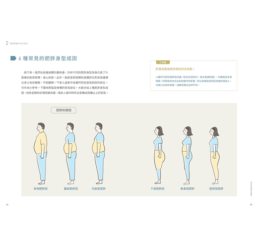 情緒與壓力和「吃」絕對有關,正悄悄地讓你落入飲食負循環!過多的壓力賀爾蒙會影響日常飲食,以及血糖血脂、脂肪累積、睡眠品質,久而久之身材就容易走樣!營養師蒐整了診間常見的6種肥胖身型成因分析(食物肥胖型、腹部肥胖型、代謝型肥胖、下半身肥胖型、焦慮型肥胖、麩質型肥胖),並且透過多位真實案例故事,幫助你了解接近哪種狀態,找出突破口才能對症解決飲食失衡。