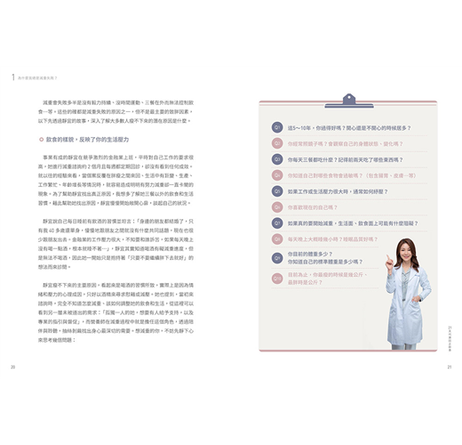 1,000位減重個案真實見證,學會「吃對食物」就能打破代謝負循環!沒有人喜歡自己變胖,但變胖卻真實反應了你長期以來的生活,多年來你有為自己好好地、有品質地吃下每一餐嗎?以及這些年來,你過得開心嗎?1,000多位走進余朱青營養師診間尋求營養療程的人們,在面對自己過去10年的時候,常有這樣的分享: