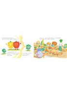 故事裡的蔬菜對話和互動直率可愛。讓孩子看了感覺親切,大人也覺得有趣,我認為是這套書吸引人的地方。