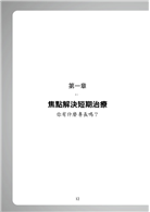 焦點解決短期治療理論不談過去,只重視現在,將焦點從「問題」轉移到「解答」,從人們本身擁有的「資源、優點」著手,鼓勵人們發展面對困擾的能力。以下簡介其重要概念: