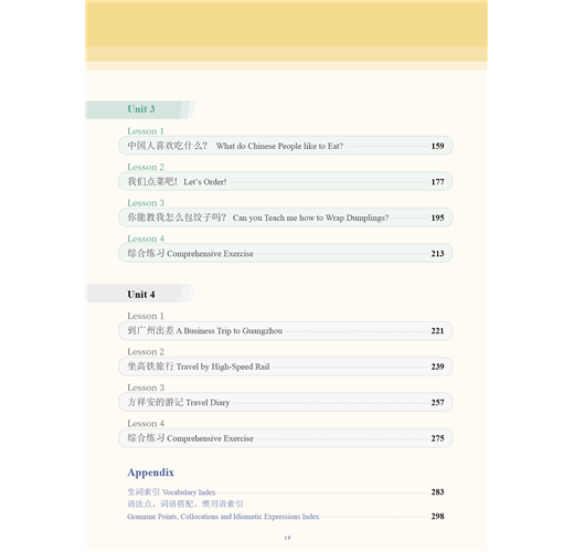 2. 八大主題單元貫穿兩冊課文,由淺入深涵蓋中、高級話題與語用任務。
