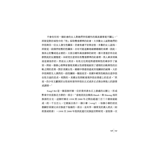 處於婚姻制度與個人情感、情欲中的關係,也提供了一個重要的例子。有關不同文化的婚姻現象與理論,在人類學的親屬研究,十九世紀中葉以來,已然是一個古典議題(如Lewis Henry Morgan 1871;Claude Lévi-Strauss 1949;Rodney Needham 1960;Jack Goody 1971;Edmond Leach 1971)。至於情感與婚姻之間論述,則是仍有開展空間的領域(cf. Anthony Giddens 1992;Victor de Munk 1996)。以民族詩學的人觀、情緒情感與社會理想之對話性為主軸,本書第一部(一至三章)將在人類學親屬研究的理論脈絡裡,探討婚姻與情感的對話性與文化意義。