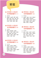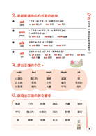 ◆ 4 大步驟聽說讀寫併用,刺激左右腦均衡發展,不僅讓孩子會認、會讀還會拼寫從第一步驟囊括十多個單字群的導圖開始,到跟讀練習以及深入掌握字母組合與自然發音的關係,最後再回到自己的母語:中文。看著中文字彙,回想這一課學過的英文單字,寫出正確的英文,這樣聽說讀寫的交叉記憶方式可刺激左右腦均衡發展,更不容易忘記單字。而後頁「對答案」的部分,編排與前面「寫出正確英文單字」的樣式完全符合,在對照答案時更佳清楚明瞭,不會看了老半天還不知道答案在哪。