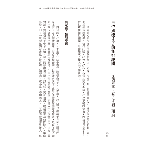 三位風流才子的怪行趣聞——從龔定盦、袁子才到王湘綺 志彬