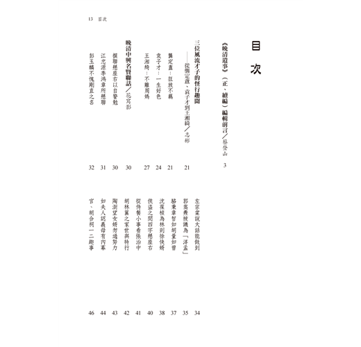 而如曾國藩、左宗棠、李鴻章、張之洞、張謇、辜鴻銘、王緗綺、溥心畬等人更同時有多篇文章來描述他們,從不同的角度切入,讓你能做一更全面的觀照。