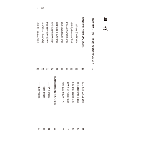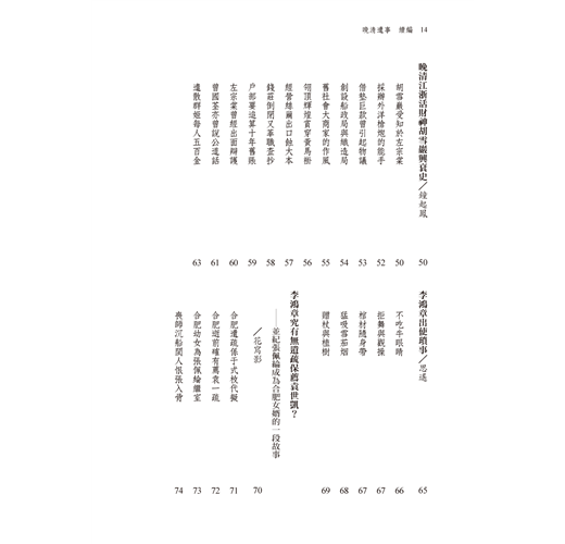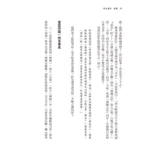 而如曾國藩、左宗棠、李鴻章、張之洞、張謇、辜鴻銘、王緗綺、溥心畬等人更同時有多篇文章來描述他們,從不同的角度切入,讓你能做一更全面的觀照。