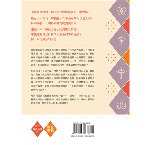 時尚與設計相關背景的兩位作者──林寶瓊、林玠瑜,結合了各種複合媒材的材料優勢,激發出嶄新的創意火花,讓中式新娘與日本花魁,皆有了令人聚焦的新樣貌!
