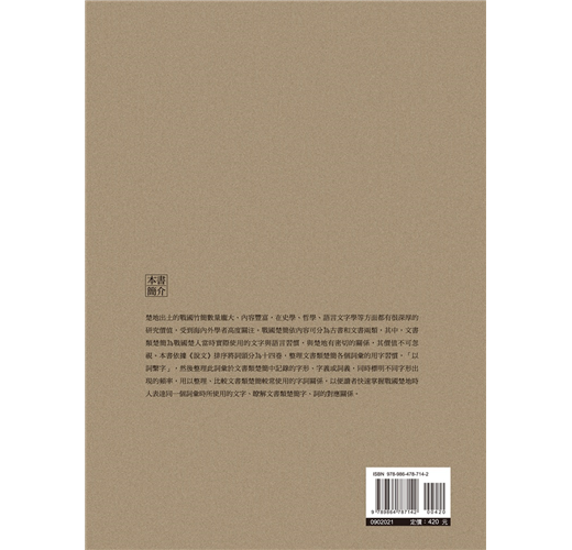 楚地出土的戰國竹簡數量龐大、內容豐富,在史學、哲學、語言學等方面都有很深厚的研究價值,受到海內外學者高度關注。戰國楚簡依內容可分為古書和文書兩類,其中,文書類楚簡為戰國楚人當時實際使用的文字與語言習慣,與楚地有密切的關係,其價值不可忽視。本書依據《說文》排序將詞頭分為十四章,整理文書類楚簡各個詞彙的用字習慣,「以詞繫字」,然後整理此詞彙於文書類楚簡中記錄的字形,以及字義或詞義,同時標明不同字形出現的頻率,用以整理、比較文書類楚簡較常使用的字詞關係,以便讀者快速掌握戰國楚地時人表達同一個詞彙時所使用的文字、瞭解文書類楚簡字、詞的對應關係。