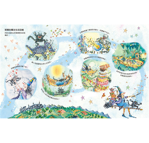 最後,提供一個說故事的建議:故事中的咒語是創造魔幻氛圍的重要關鍵,對孩子來說,念幾個怪裡怪氣的字就能變身位移、穿越時空,能力有限的小小身軀可以得到大大的激勵。因此,當你念出阿妮最常用的咒語「阿布拉喀噠碰」時,一定要夠入戲,該有的口氣、重音、節奏,一樣都不能少。如果你相信自己有魔法,這個魔法,也能讓孩子像被下了咒一樣,更加愛上閱讀!