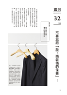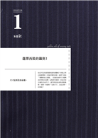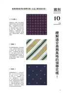 ◎ 十大單元,從西裝、襯衫、領帶、配色、花紋&材質、夏季涼感穿搭、冬季防寒穿搭、配件挑選、重複穿搭、衣飾保養,作者一一指明藏在西裝服飾裡的細節,讓各種體型的男士都能穿出一身「西裝筆挺」。