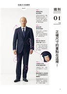 本書沒有各種眼花撩亂的穿搭組合讓人照樣買買買,而是提供清晰明確的西服選購概念,讓讀者熟知,如何挑選真正適合自己身型的「尺寸」,與各單品搭配時需要注意的「比例」。