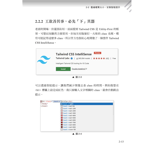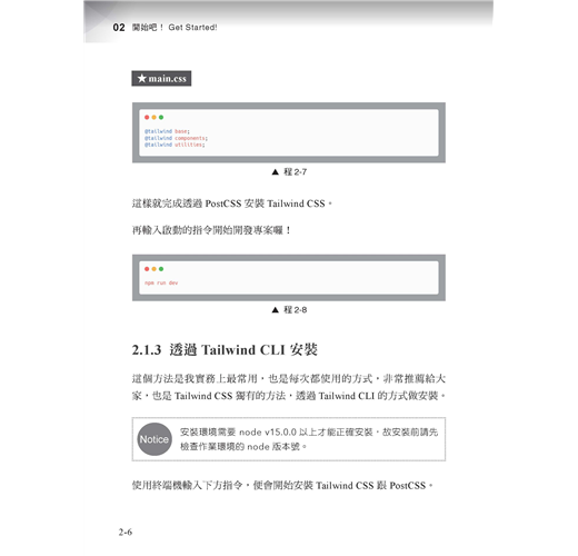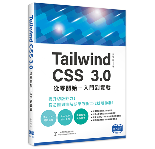 ● 從零開始介紹 Tailwind CSS 的核心知識、安裝方式、基本元件建立,帶領讀者快速入門