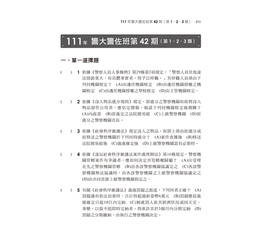 本書除了收錄常見的單選、複選題之外,更收錄申論題,申論題是一種最能驗收苦讀成果的題型,自103年度起,警察特考三等、四等考試的「警察法規」一科均納入申論題型,各二大題,許多人真正感到困惑的其實是申論題的解題方式,究竟要如何才能在申論題型獲取高分、拉開與對手的差距?因此需要有詳盡的擬答來參考,書中收錄的申論題都有名師精心解答,並以模擬演練之方式,逐步解析申論題型的解題技巧。