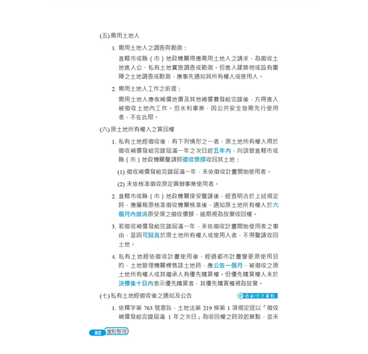 【土地法規】土地法規除法條內容外必需搭配諸多大法官解釋,講義裡各種補充亦要熟讀,作答時更要能正確引用。土地法規疊床架屋,自己要能融會貫通相同概念(如徵收補償在土法∕平權∕土徵裡的各自規範),前後翻閱講義製作對照筆記,厚實的土法講義應該會是最破爛的一本。課本裡的概念若能自己舉一反三,才是真的熟記!