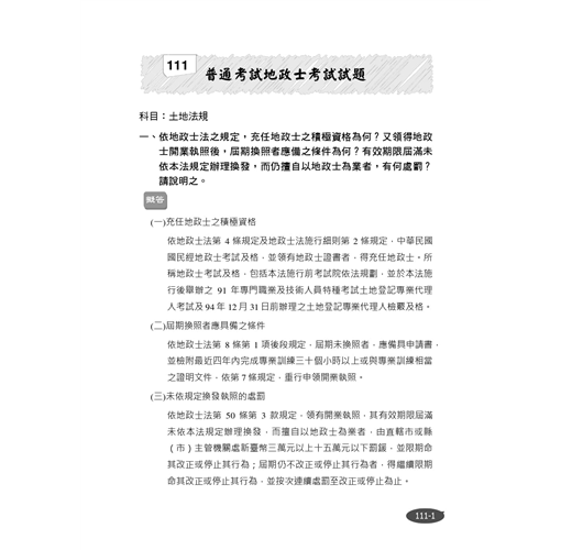 ★收錄最新95~111年地政士歷屆試題,100%題題解析!