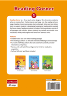Reading Corner系列套書依照學習程度,共分為三個級別,專為從學習閱讀階段 (learn to read) 轉變到閱讀學習階段 (read to learn) 的國小學生所設計。內容包含簡短有趣的故事和文章,能夠幫助學生發展未來學習英文所需的基礎閱讀技巧。每冊共有 16 個學習單元與 2 個複習單元,搭配全彩的練習本 Workbook,與課程主題完美銜接,有效提升閱讀理解與單字運用,在專注內容學習與流暢度練習的同時,培養語言的接收能力(聽、讀)與表達能力(說、寫)。