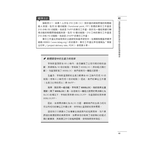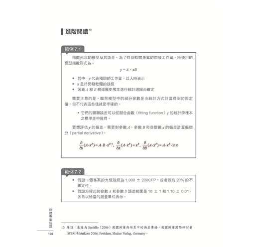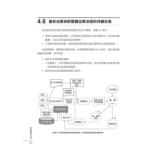 ► 第二部分則是介紹必要概念與技術,以理解估算過程結果的品質取決於輸入的品質和它使用的生產力模型之品質,以及瞭解估算過程所增加的調整因素有什麼樣的限制。