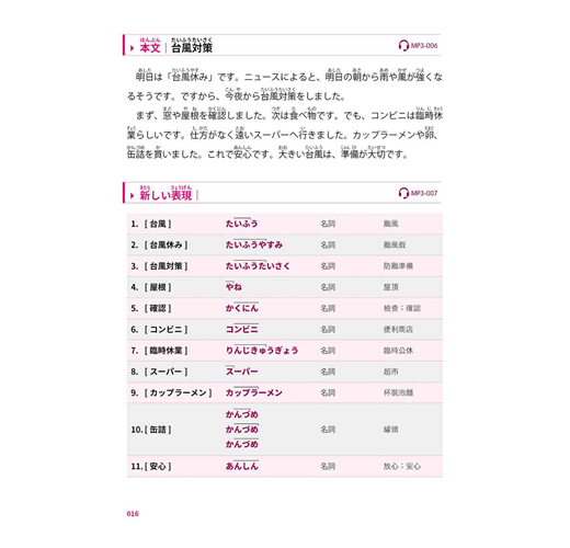 •「補足」:適時補充單字、語彙或文法,累積日語的實力。
