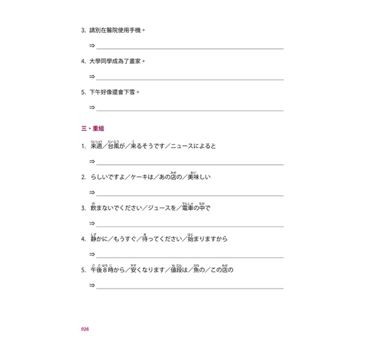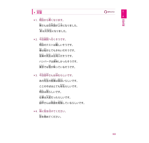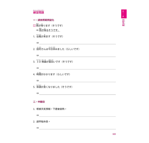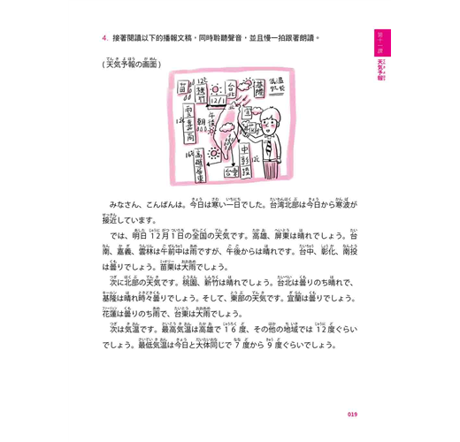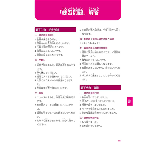 •「本文」:配合每課的學習主題,熟悉日語的書面語,增強閱讀和寫作能力。