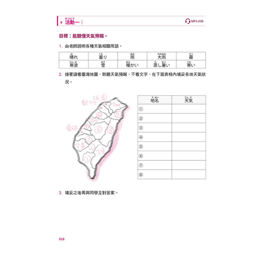 2. 請同學兩人一組,互相介紹自己家鄉的天氣,或輪流上台介紹自己故鄉的天氣特徵。