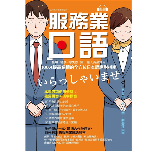 台灣在國際上已佔有一席之地,來台旅遊或是工作的日籍人士也越來越多,服務業從業人員常是第一線地接觸日籍人士,具備良好的日語能力與合宜的禮節,就等於提升了國際形象。本書便是專為「百貨、餐飲、飯店人員、計程車司機、美容師、按摩師、攝影師、導遊、機場服務人員」量身訂做的日語學習書。