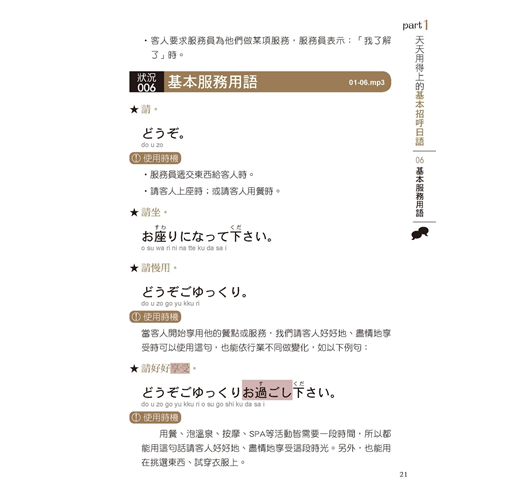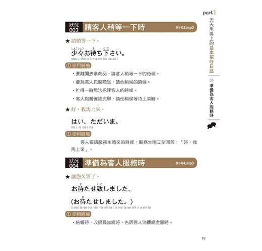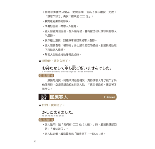 不只有日語,還有羅馬拚音+漢字標音,立即就能上手應用!◆ 成功提升待客滿意度,讓日本客人爽快消費、不斷光臨的應客之道