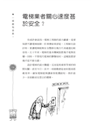 電梯業者關心速度甚於安全?╱電梯等多久會開始不耐煩?╱如何縮短電梯的等候時間?╱如何計算建築物需要幾部電梯?╱讓電梯加速就能服務更快嗎?╱如何估計電梯的停靠次數?╱為什麼有些電梯會反方向行進?╱電梯為什麼不理你?╱慢速電梯讓乘客更滿意?