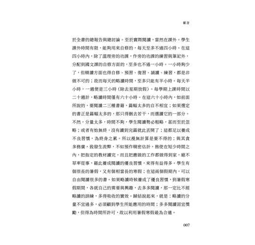 以本書為綱領進行略讀的嘗試,定能培養出優良的閱讀習慣、豐富的文字感悟力以及經濟實用的寫作技巧。
