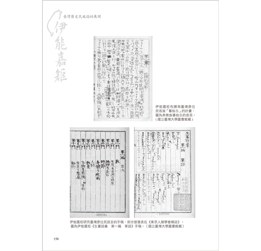 本書希望能在上述所整理三個歷來的伊能嘉矩研究史基礎上,介紹伊能嘉矩其人其學的歷史,以及透過伊能嘉矩,不論其是否在場,所呈現的時代歷史。最後是關於本書的副標題「臺灣歷史民族誌的展開」,希望能充分表達伊能臺灣研究的知識形式。伊能曾經對於「土俗」與「歷史」,寫下這樣的話語:
